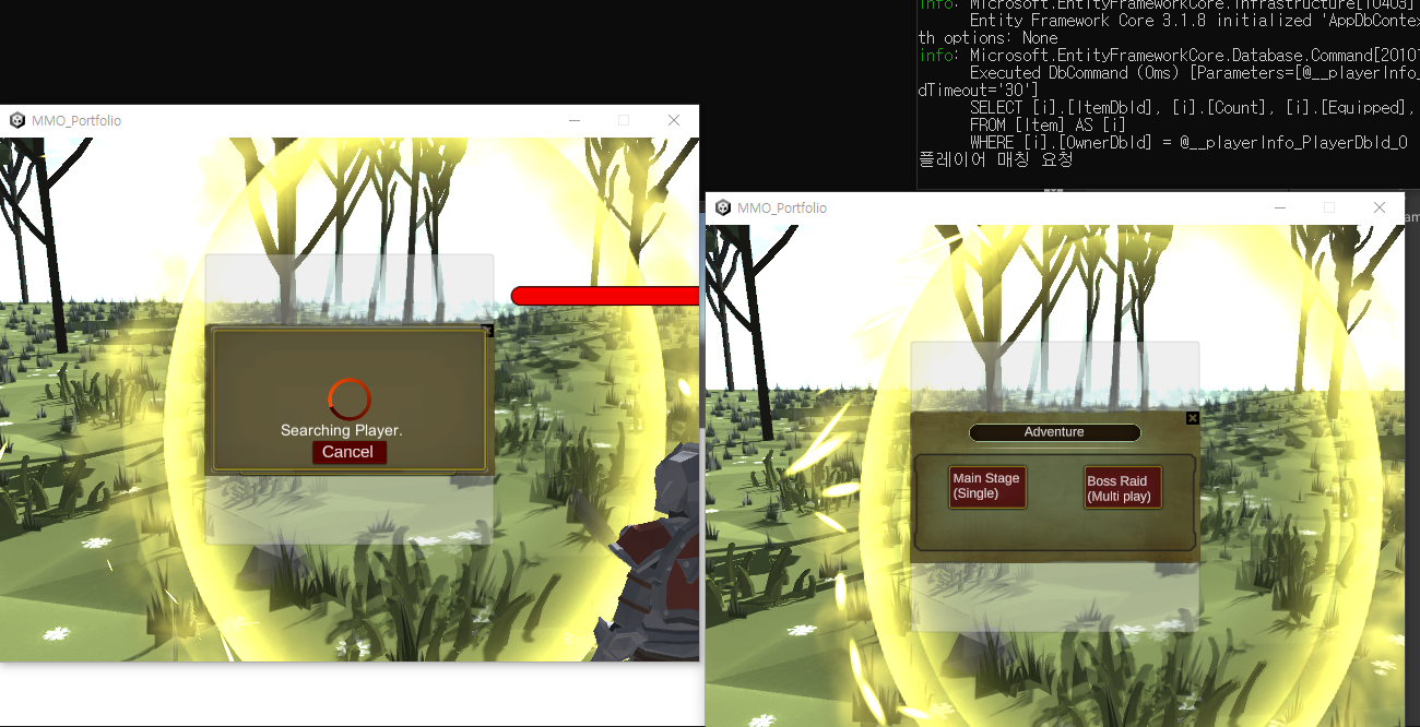 현재 Knight Online이라는 프로젝트를 진행하고 있고, 싱글 컨텐츠외에 멀티 플레이를 통해 보스 레이드를 하는 컨텐츠를 구현 하고있다.